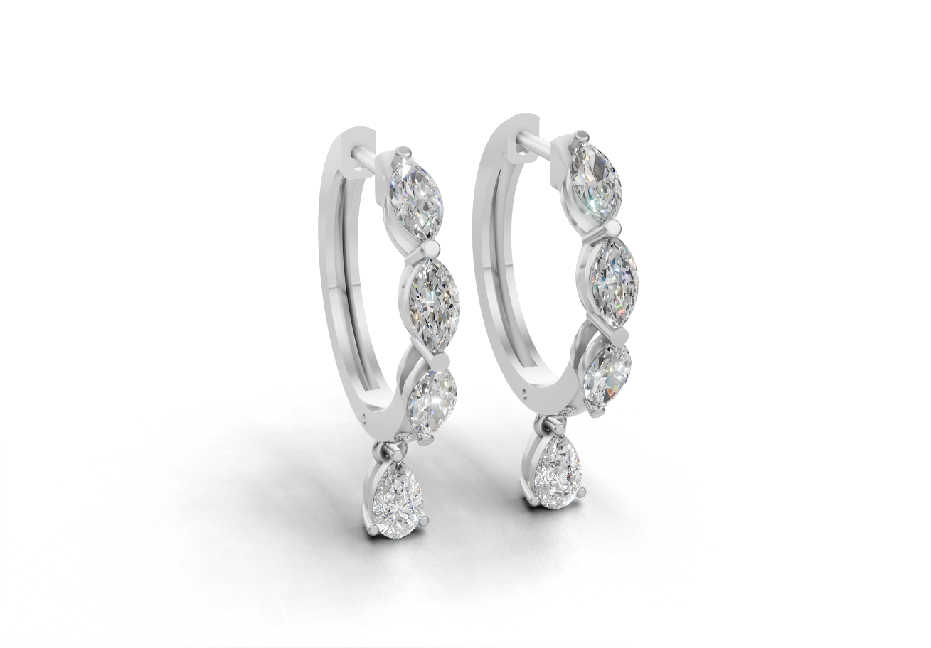 أقراط ألماس ماركيز وكمثرى من الذهب عيار 18 قيراط