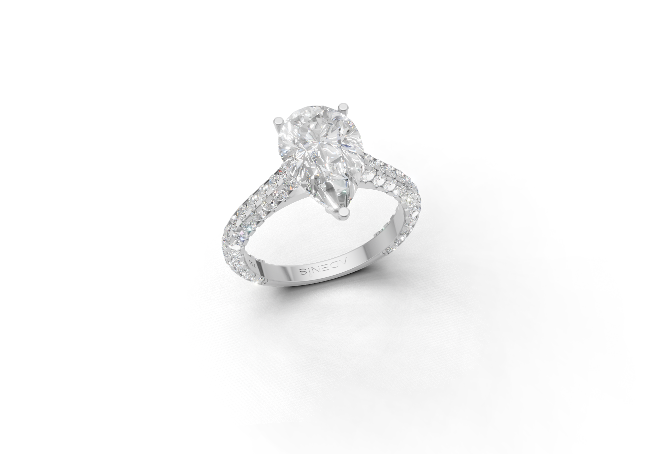 خاتم ألماس بقطع كمثرى ودائري من الذهب عيار 18 قيراط
