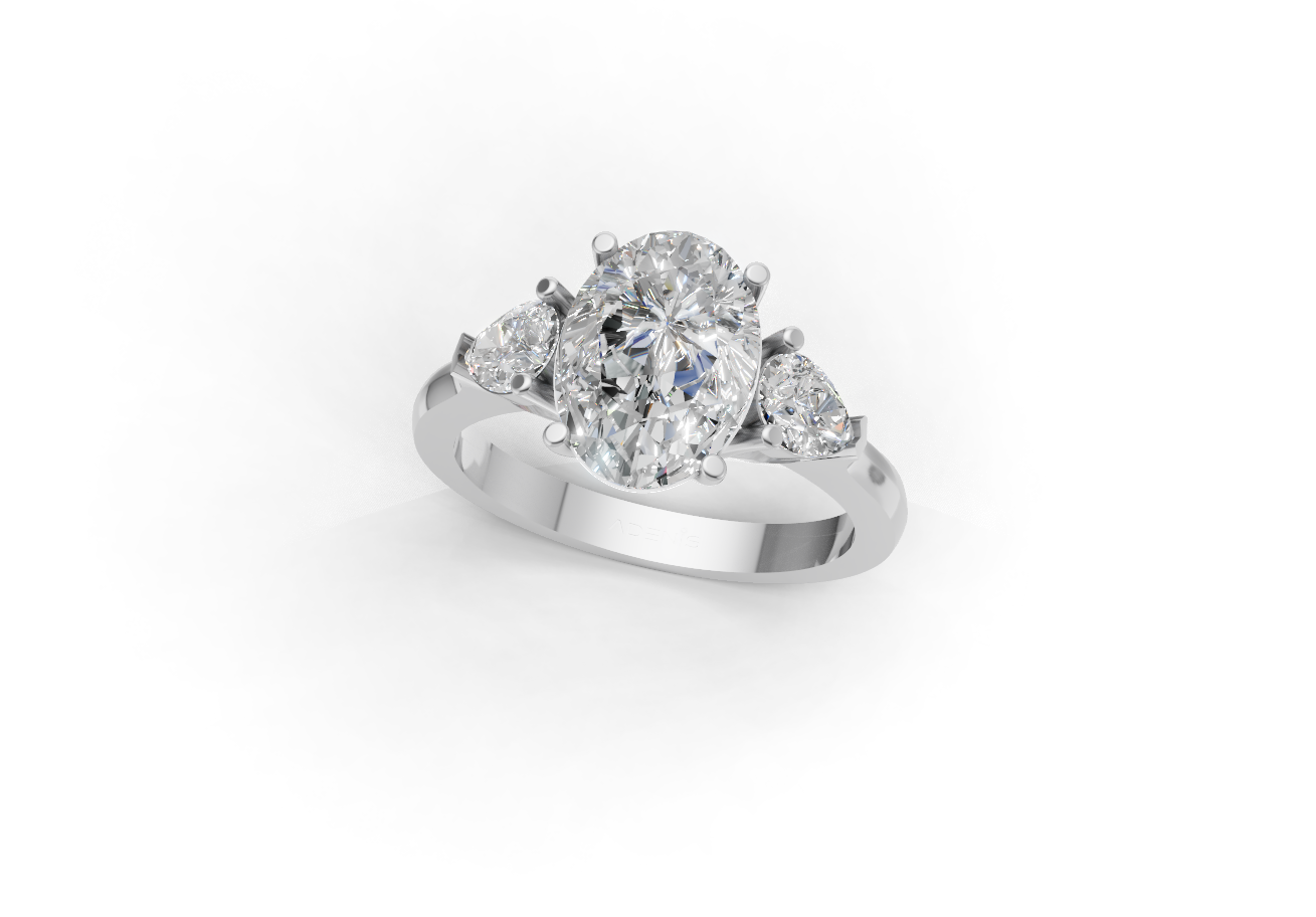 وزن الألماس بالقيراط: بيضاوي – 1.97 قيراط، كمثري – 0.47 قيراط