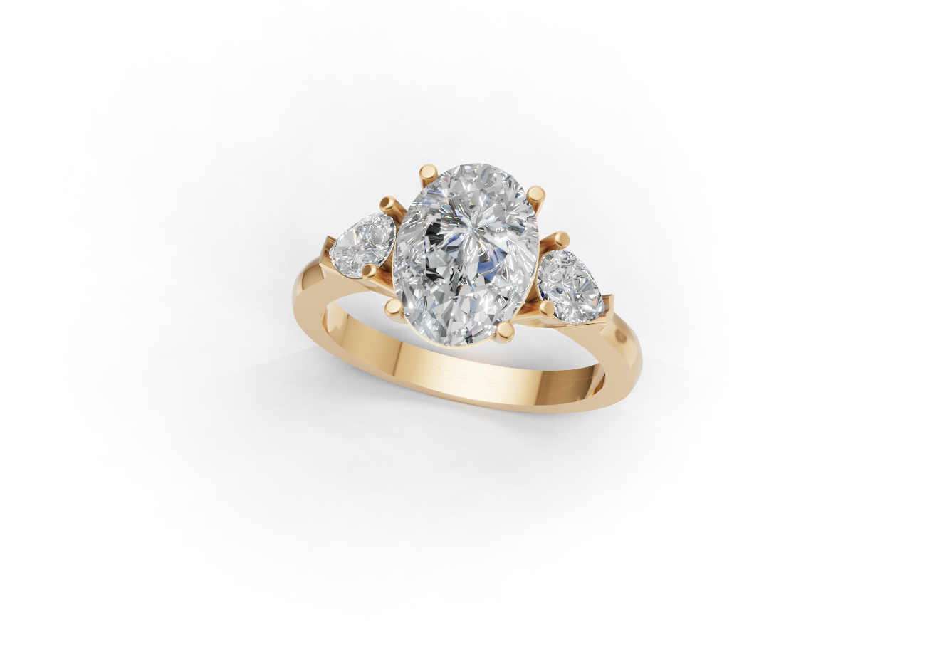 مزيج أنيق من ألماس بقطع بيضاوي وكمثري مثبت في ذهب عيار 18 قيراط صلب، مصمم ليمنح توازنًا في البريق وسحرًا خالدًا.