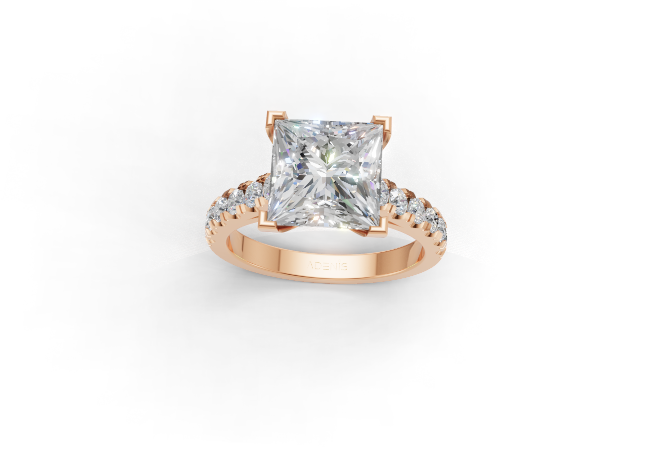 خاتم خطوبة سوليتير بقطع برنسيس مع إعداد Pavé من الذهب عيار 18 قيراط