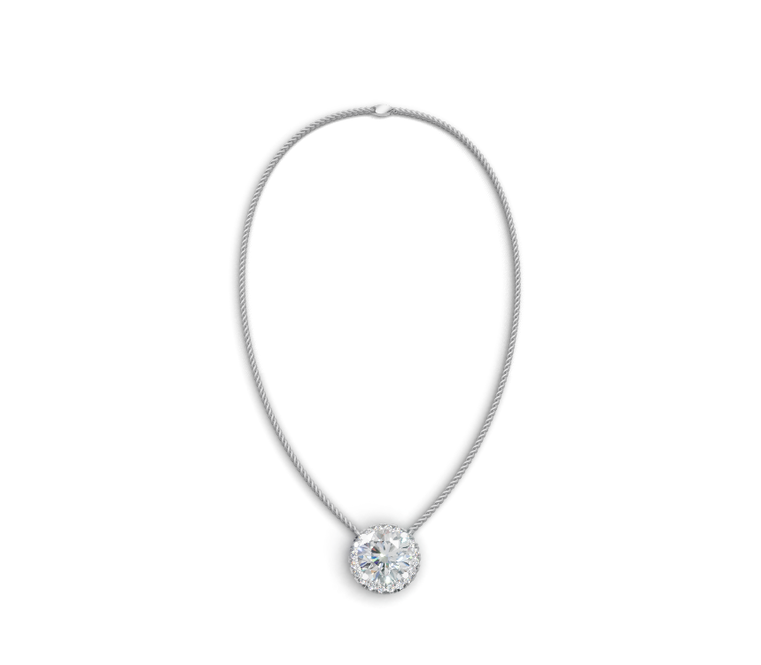 متوازن بين الأناقة والحضور، تقدم قلادة الماسة الدائرية هذه بريقًا راقيًا دون إفراط. يعزز التصميم النظيف انعكاس الضوء، مما يجعلها مثالية للارتداء الأنيق اليومي.