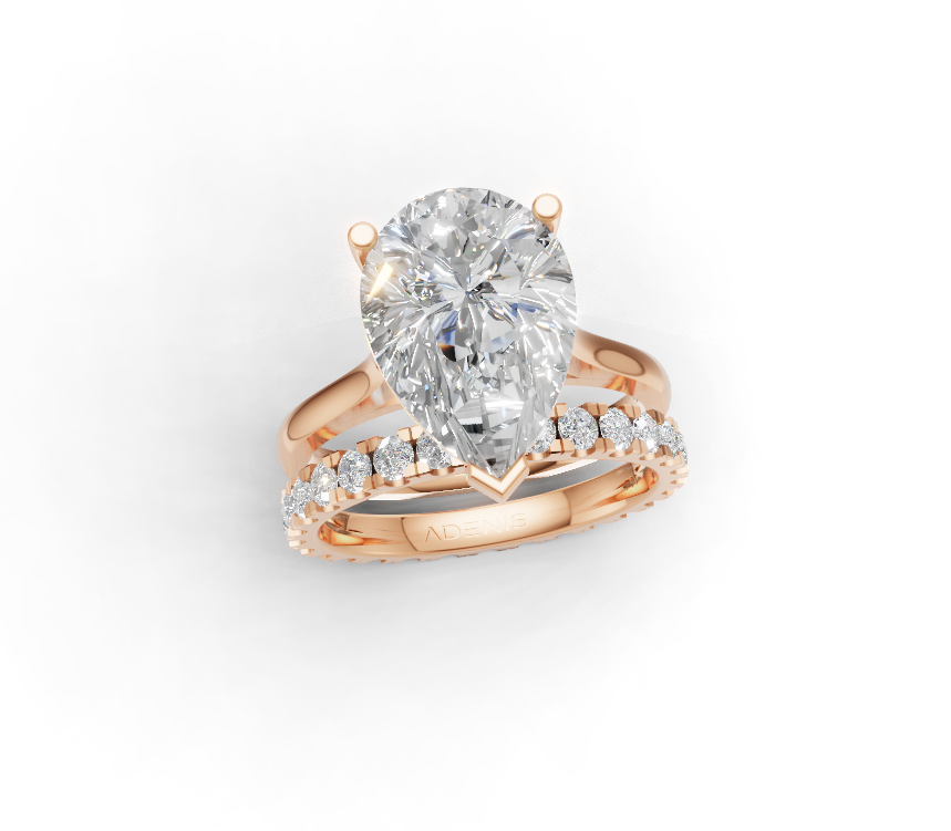 A dazzling pear and round diamond ring set in solid 18K gold, combining elegant curves with brilliant sparkle for a statement of timeless luxury.