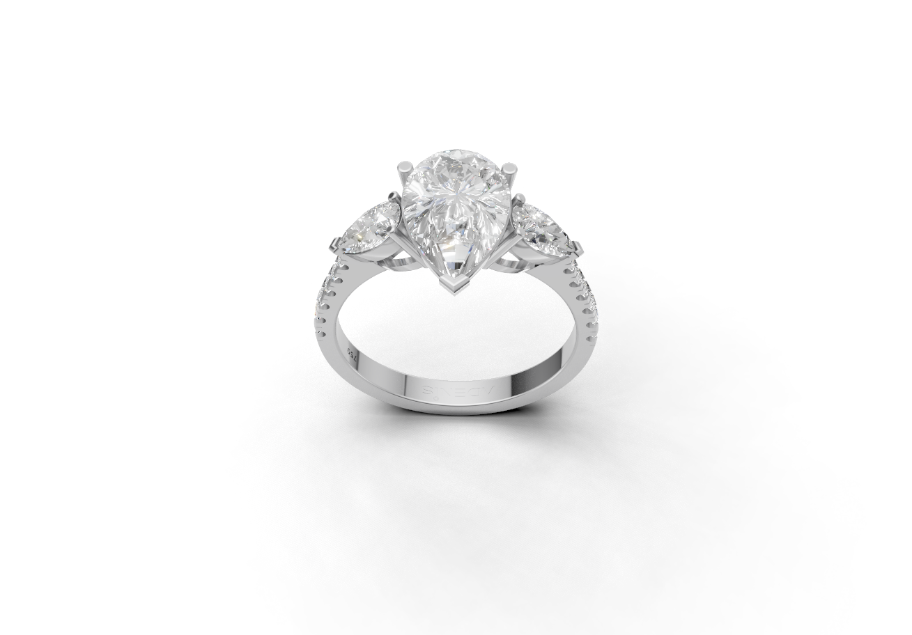 Впечатляющий бриллиант грушевидной огранки, закрепленный в сияющем золоте 18 карат, создан для усиления блеска и изящного силуэта.