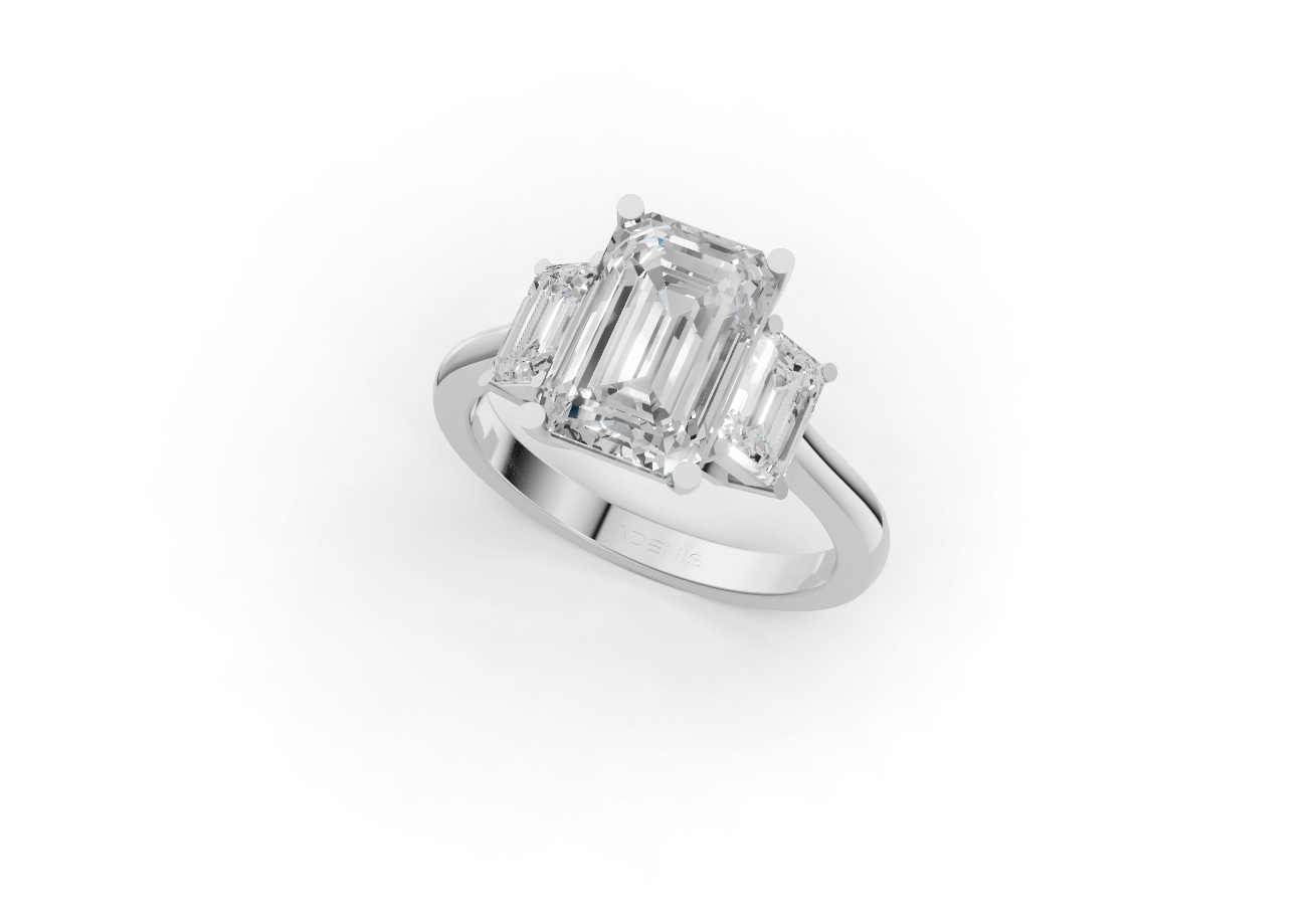 Впечатляющий бриллиант огранки «Изумруд», закрепленный в сияющем золоте 18 карат, создан для демонстрации блеска и чистоты с любого угла.