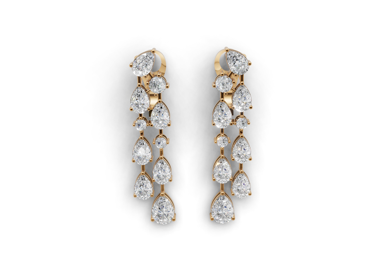 Изящно подвешенные бриллианты огранки «груша», закрепленные в сияющем золоте 18 карат, созданы, чтобы ловить свет при каждом движении.